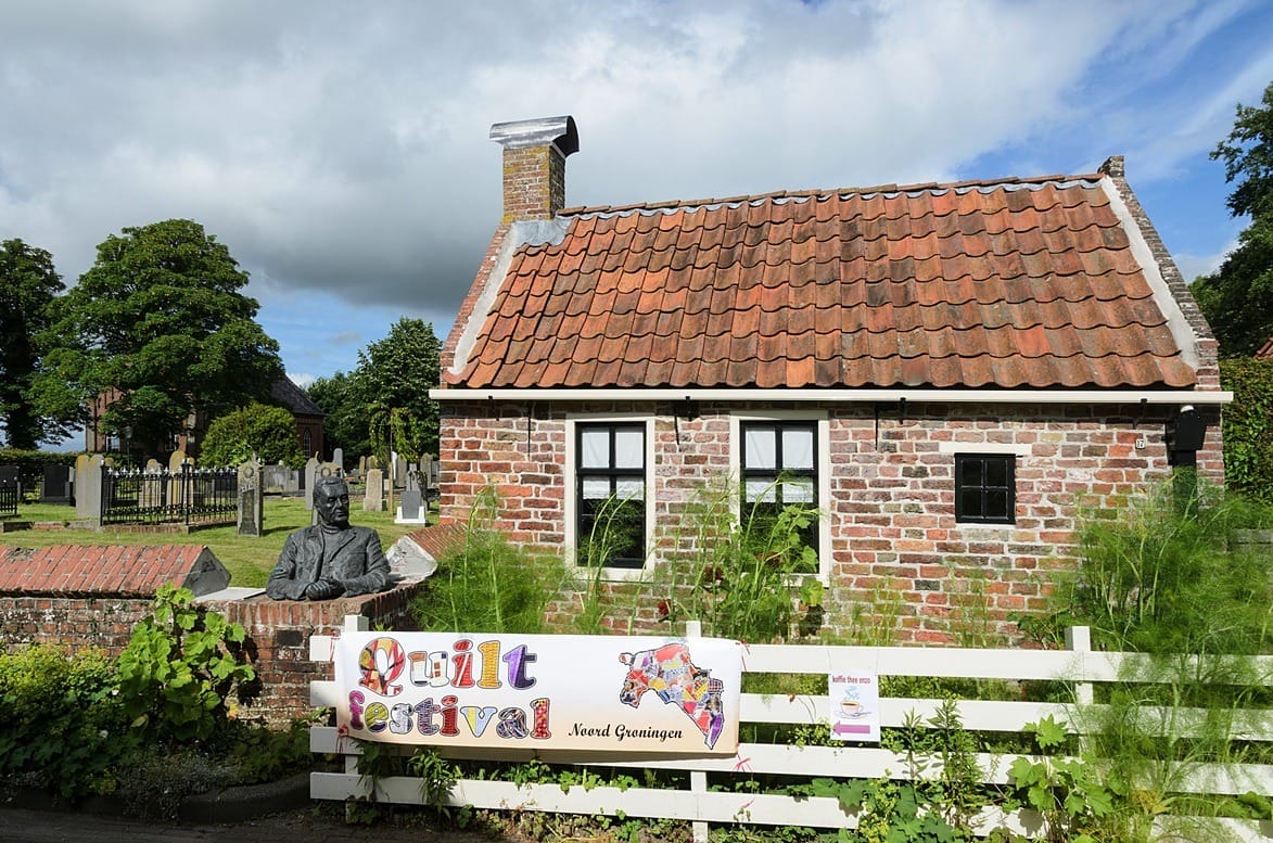 We zijn weer terug van het quiltfestival in noord Groningen. Het was een fantastische belevenis! Het festival duurt drie dagen: morgen kun je er ook nog terecht. De opzet is bijzonder: je kunt met eigen auto of fiets iets meer dan tien dorpjes bezoeken waar verschillende kerken, dorpshuizen en molens als expositieruimte zijn ingericht. De organisatie en deelnemende kunstenaars hebben goed