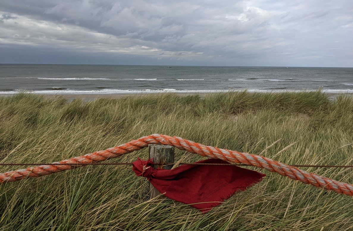 Wat kunnen we – ook als handwerksters – blij zijn met de schapenwol die we als mensheid al eeuwenlang mogen benutten! Texel is een schapen-eiland en bij mijn verslag hoort ook een foto van deze wol-producerende dieren. Het kan hier ook flink waaien en daar hield ik rekening mee bij de keuze van mijn sjaaltjes. Juist als het zo hard waait wil ik liever geen grote sjaals met lange slierten, want dat waait allemaal voor m’n gezicht en daar heb ik dan last van. Ik koos voor een klein sjaaltje van pure wol en dat was een goede keus. Wanneer het sjaaltje niet meer nodig was op een wandeling en te warm werd, kon ik het telkens heel makkelijk in m’n tas laten glijden. Blij met wol: onvolprezen wol, waar we al zòveel zegen van hebben ontvangen!