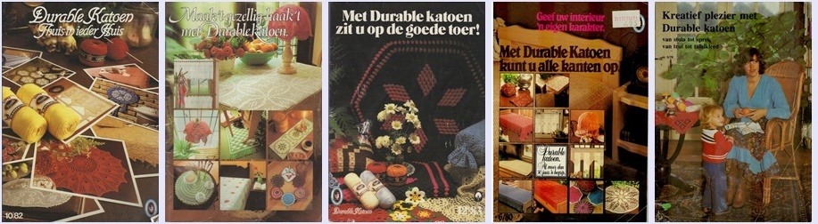 Voor wie dus snel wat ‘sfeer en romantiek’ wil. En voor degenen die liever hun kleedjes zelf haken heb ik nog wel wat àndere Durable-boekjes in m’n shop: Durable Katoen thuis in ieder huis, Maak ’t gezellig, haak ’t met Durable katoen, Met Durable kunt u alle kanten op en Kreatief plezier met Durable katoen.