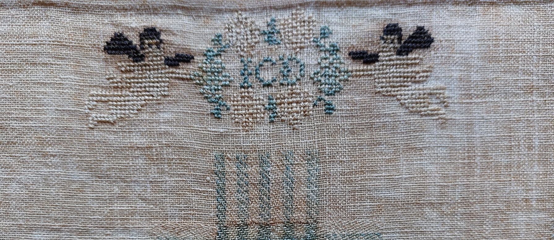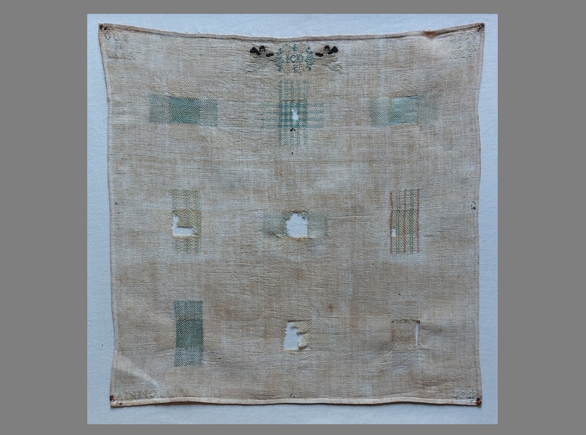 Er is al veel geschreven over de stoplappen, die vroeger gemaakt werden door dochters uit de meer welgestelde gezinnen. De stof en het garen (en het onderwijs) kon niet iedereen zich veroorloven. Met bijzonder kleine steekjes werkten de jongedames aan hun proeve van bekwaamheid. Gelukkig dat er ook wat stoplappen bewaard zijn gebleven. Het is best voor te stellen dat er exemplaren zoals deze ook zijn weggegooid, door mensen die ze niet meer herkenden noch de waarde er van inzagen.