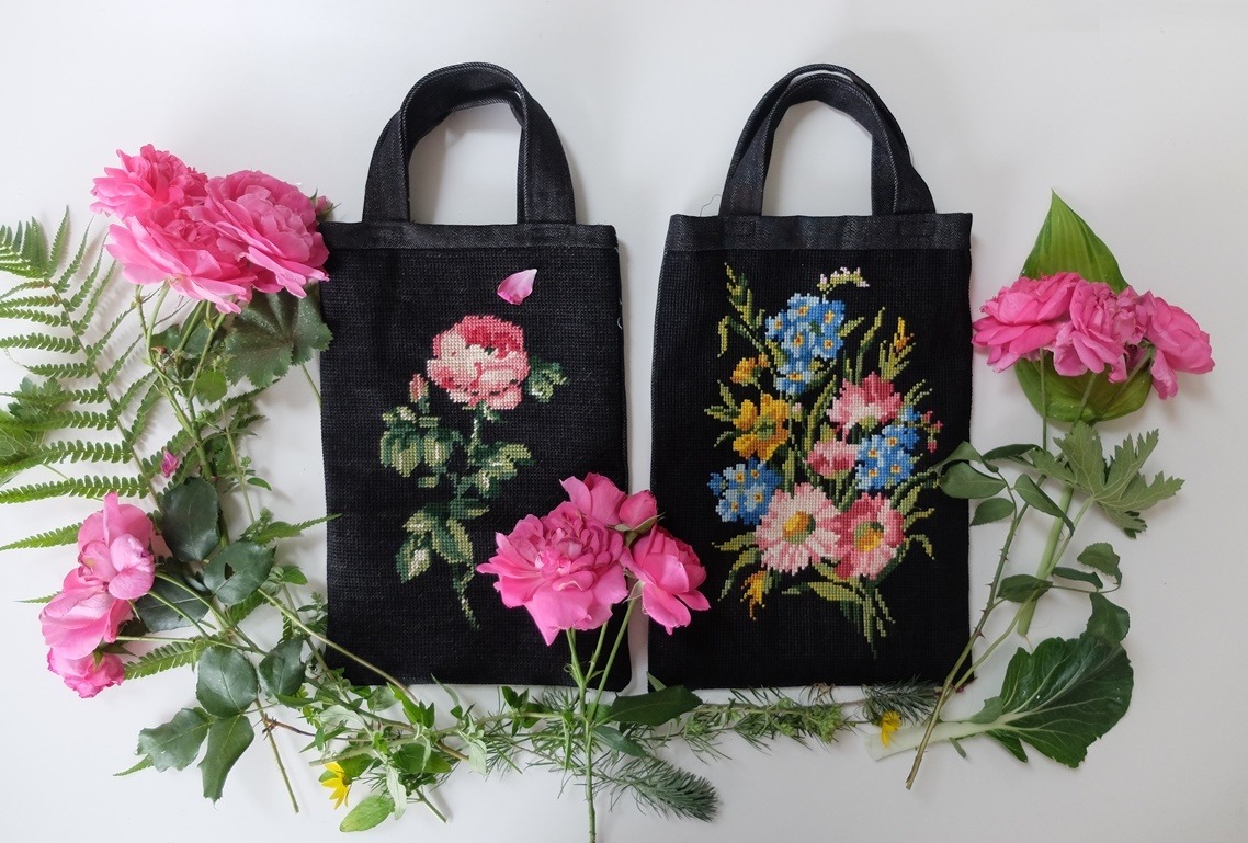 Als je toch van alles tevoorschijn moet halen om een tasje te naaien, dan kun je er net zo goed twee maken. Dus maakte ik er voor mezelf ook nog één. Het tasje links was bestemd voor een bloglezeres en vandaag kwam ze het ophalen. Ze vertelde dat ze m’n blog elke dag leest en dat ze het inspirerend vindt en dat ze de musea-tips waardeert en dat ze soms dan ook naar een bepaald museum gaat wat ik op m’n blog heb genoemd. Dat vond ik leuk om te horen! Van iemand anders kreeg ik deze week te horen dat ze het op prijs stelt dat ik die oude handwerkboeken weer onder de aandacht breng en dat zij nu ook weer met veel plezier haar oude boeken doorbladert en kijkt of ze er nog wat uit kan maken. Wat mooi! Ik vind het ook wel bijzonder, dat ik deze invloed mag hebben!