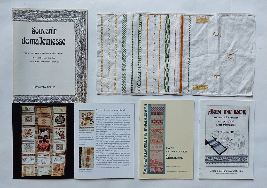 “Geheel ten onrechte, schrijft Hennie Stevan in 2003 in haar boekje over Twee Pronkrollen uit Groningen, zijn de handwerkrollen veel minder in de aandacht geweest dan merklappen. Dat kwam mede doordat de meeste pronkrollen in particulier bezit bleven, terwijl merklappen volop in grote musea werden bewaard en tentoongesteld.