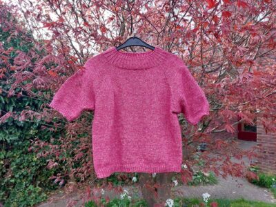 Op vakantie breide ik de mouwen af, en op de laatste avond kon ik hem showen op de hei: