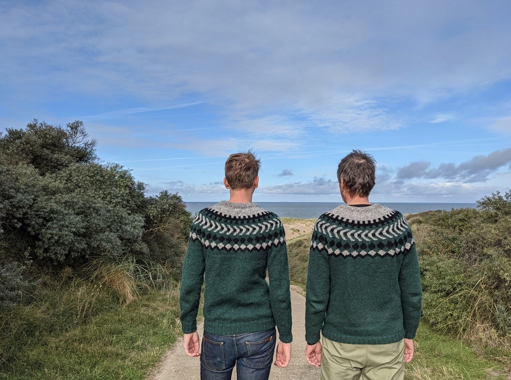 Ik breide vorig jaar een trui voor mijn man en toen mijn zoon die zag wilde hij er precies zoéén. Precies een week geleden deed ik nog m’n best om hem af te krijgen en dat lukte. En toen was daar aan het begin van onze vakantie dat fijne moment: “Alsjeblieft!” O, zo spannend of hij goed zou passen, maar het was gelijk duidelijk toen hij hem aantrok. Hij zat perfect!