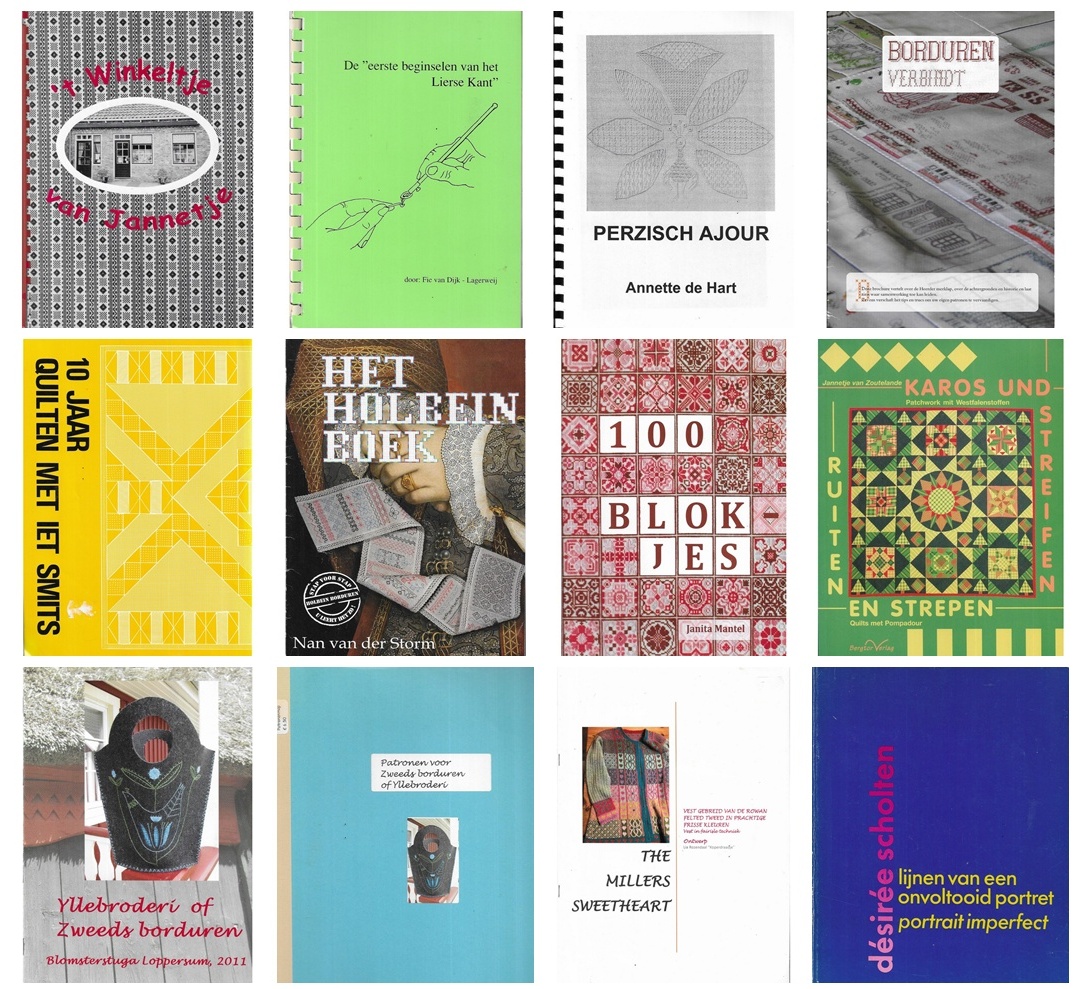 Sinds ik een paar jaar geleden een lezing heb gevolgd bij de Koninklijke Bibliotheek, ben ik nog meer alert op deze boeken. Als ik ze tegenkom, hou ik ze apart tot een blogje zoals nu. Leuk om ze bij elkaar te laten zien, en wie weet ziet de KB er ook nog wat tussen. Want zij hebben ook veel verzameld, en willen compleet zijn met alles wat er op het Nederlands taalgebied is uitgegeven. En daar horen ook de uitgaven ‘in eigen beheer’ bij. Want ook dìe laten een beeld zien van waar handwerksters allemaal mee bezig zijn.