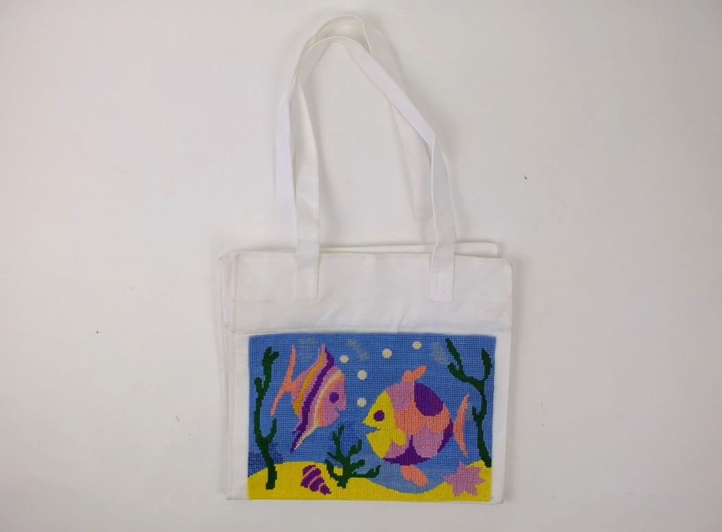 Wat wèl lukte was om jullie mijn eerste tas te laten zien die ik lang geleden maakte. Dit is één van mijn eerste borduurwerkjes die ik op een ’tweedehandsmarkt’ vond en ik vond het zo schattig. Twintig jaar geleden was het denk ik, en ik naaide het op een reclame-tas. Vervolgens gebruikte ik die tas nooit, want dat deed je niet in die tijd. Wie liep er nou met zoiets? Nu zou het wel kunnen, maar nu kan ik hem niet meer vinden. Alleen deze oude foto. Ach …. gaat het wel goed met me? Ik kan de boel niet meer vinden, en ik blog soms pas ’s avonds in plaats van ’s ochtends. Het is hier zo druk met van alles. En ik verlang gewoon even naar vakantie!