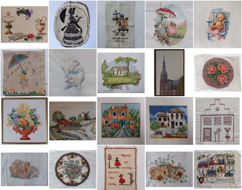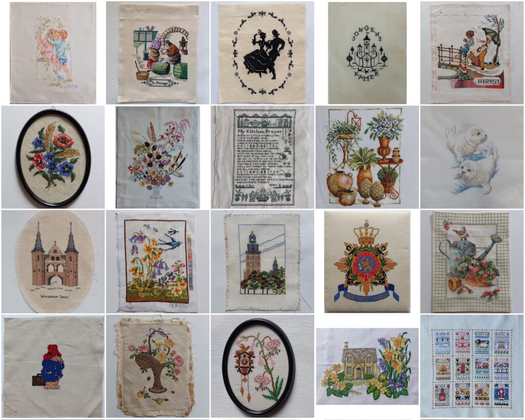 Er zitten mooie borduurwerken tussen. Je vindt ze in de categorie Handwerk – Borduurwerken. Je kunt daarin doorklikken naar ieder borduurwerk zodat je op het blogje komt waar ik erover heb geblogd. Daar kun je er dan nog wat meer over lezen.