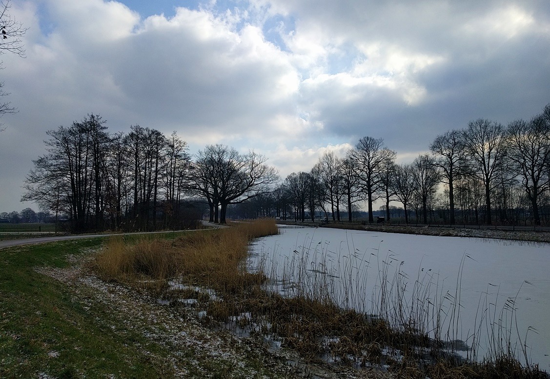 Het is de koudste laatste-dag-van-februari die ooit is gemeten. Dat vroeg om een parkeer-pauze. Halverwege de weg langs het kanaal ging ik een brug over, speciaal om te voelen hoe koud het was. Antwoord: koud! Maar dat wisten we al, want heel Nederland praat erover.