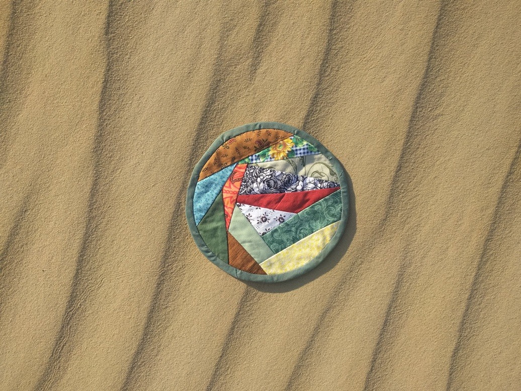Zand is het symbool van wankel en veranderlijk. Geen stabiele ondergrond (behalve voor iets lichts, zoals dit patchworkje).