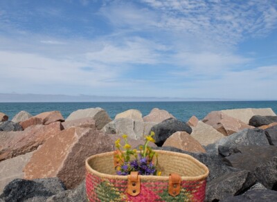 Op reis is het fijn als je overal een passende tas voor hebt. Ik had een klein zelfgemaakt etuitje bij me waar ik een handwerkje in had gestopt, om op elke plek wat te kunnen borduren. Terwijl je de zon in de zee ziet zakken bijvoorbeeld.