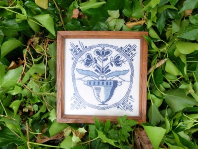 De vereniging van merklapliefhebbers publiceert dit jaar elke maand een borduurmotief van oud-Hollandse tegels. Het zal me niet verbazen als dit motief van de klassieke tulp ook nog dit jaar terug te zien is. Dan loop ik vast voorop met dit mooie klassieke tulpje.
