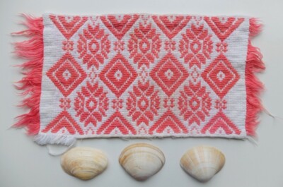 Doorrijgen op een restje handwerkstof geeft een leuk resultaat en is een goede oefening voor kinderen.