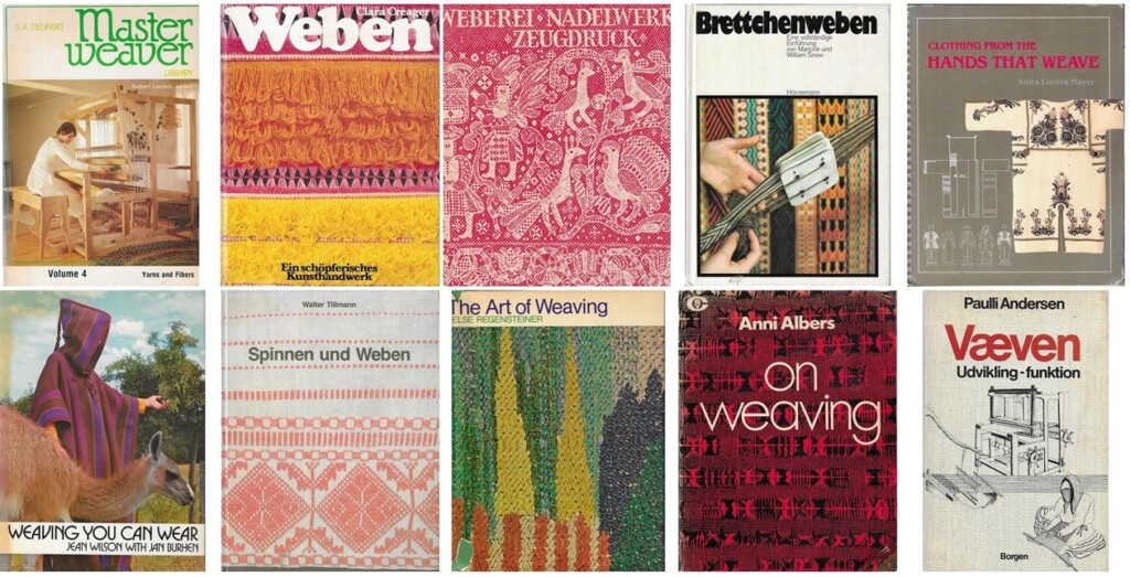 Nadat de kennis van het weven vele eeuwen was doorgegeven en de specifieke kennis binnen de eigen groep was bewaard, kwamen er uiteindelijk ook de boeken. Soms waren het onderzoekers van bùiten de groep, die geboeid werden door wat zij in bepaalde gebieden aantroffen met betrekking tot weven. Soms waren het vakmensen die hun kennis over weven bundelden in boeken. En soms waren het kunstzinnige mensen die de ‘schöpferische’ kracht van het weefgetouw ontdekten, waar ze de vrijheid ervaarden om te maken wat ze wilden uitdrukken.
