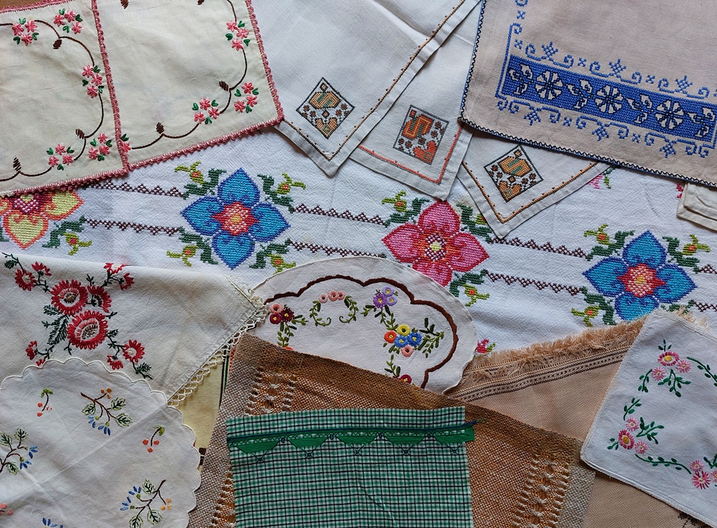 Als die kleedjes en kussentjes een beetje versleten waren, vond ik dat nooit erg. Het borduurwerk was vaak nog mooi genoeg en ik vond het vooral leuk om het een beetje te bestuderen. Welke techniek was er gebruikt en wat kun je er nog mee?