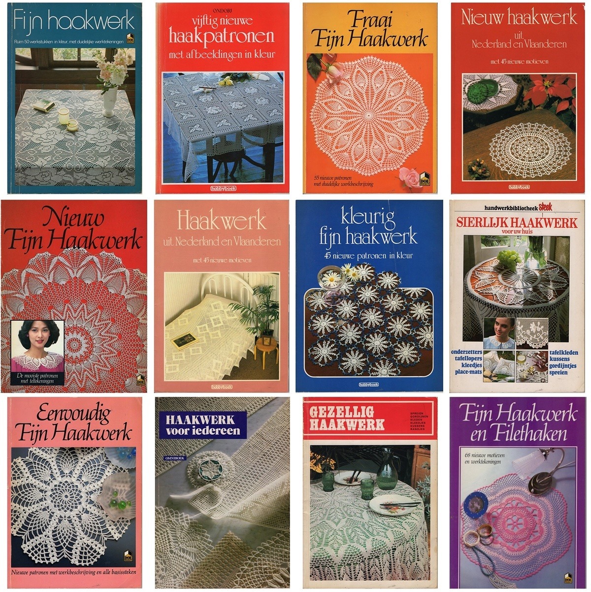 Wie op zoek is naar oude haakpatroontjes denkt in eerste instantie aan de oude Durable-boekjes, maar er is nog veel meer moois overgebleven uit de zeventiger- en tachtiger jaren van de vorige eeuw. Dit zijn allemaal boekjes van zo 80 tot 90 pagina’s, in softcover-uitvoering. Elk boekje staat boordevol mooi gefotografeerde haakwerkjes (vooral kleedjes!) met daarbij het patroon. En die patronen zijn zo duidelijk als wat.