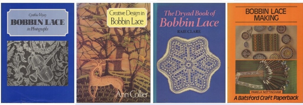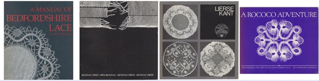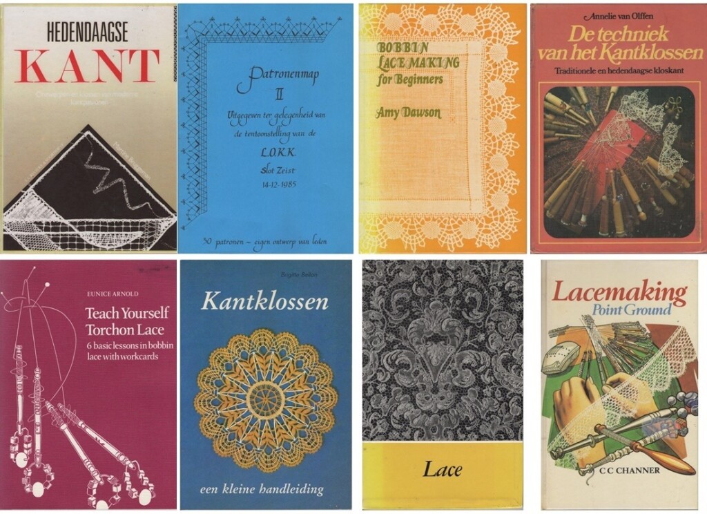 Die geschiedenis van kantklossen als industriële werkvorm is er wel geweest en in de geschiedenis zijn prachtige dingen gemaakt. Het boek Bobbin Lace in Photographs bevat veel mooie foto’s van prachtige kant. Als je het niet erg vind om in een boek te knippen, zou je haast wat plaatjes gaan uitknippen om die in te lijsten. De volgende drie boeken over Bobbin lace (allen uit de tachtiger jaren) laten de technieken zien in woord en foto en moedigen aan om zelf aan te slag te gaan.
