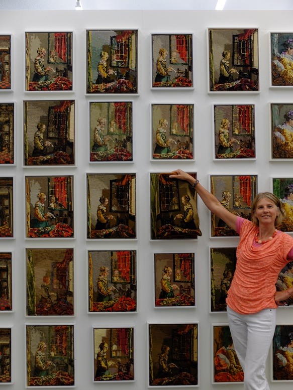 Veel vrouwen hadden in de vorige eeuw zin om dit meesterwerk na te borduren en dat kon omdat fabrikanten stramien bedrukten met de afbeelding. Rob Scholte verzamelde een heleboel van die borduurwerken en hing die op in een museum. Enigszins vervreemdend, maar toch: Een indrukwekkend gezicht!