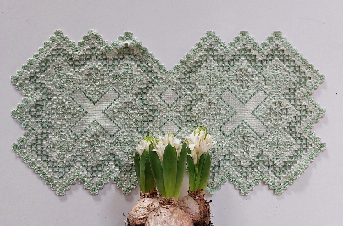 Een mooi Hardanger kleedje voor de dag na kerst.