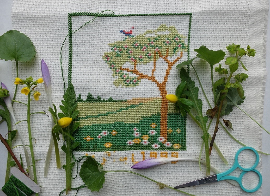 1. Leuk je landschapje wat je afmaakt, wellicht is het leuk om de rand niet met een rij kruisjes te verbreden tegen de andere kruisjes aan maar een randje eromheen ( enkele kruisjes, een rij overslaan en daarna weer een rij kruisjes, misschien in een andere kleur om de drie of meer een tussenkruisje te maken)