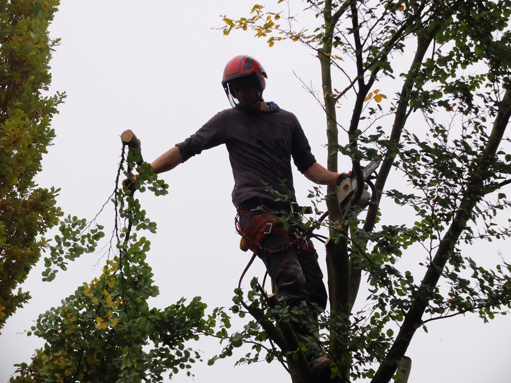 “Koffie, willen jullie koffie?” Ik beefde en bibberde nog. En ik huilde. Ik had die koffie zelf nodig. En de werklui mochten m’n tranen wel zien. Ze begrepen dat ik het moeilijk vond. We hadden zomaar iemand op internet gezocht, die bomen om kon zagen. Eerst kwam hij om het door te praten. Dat was twee maanden geleden. Hij kwam binnen en gaf ons een hand. “Ik ben hier al eens eerder geweest!”, zei hij. En tegelijkertijd zei ik: “Ik kèn jou, jij hebt hier vroeger gespeeld!” We waren allebei verbaasd. Een jeugdvriendje van onze zoon. Hoe is het mogelijk?