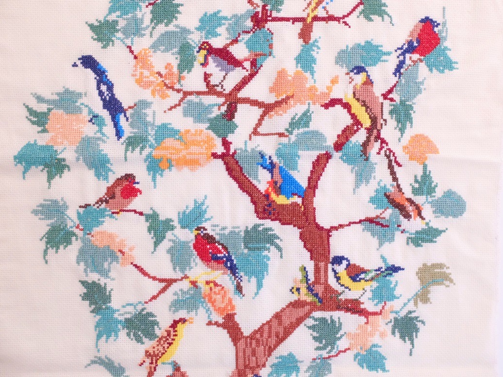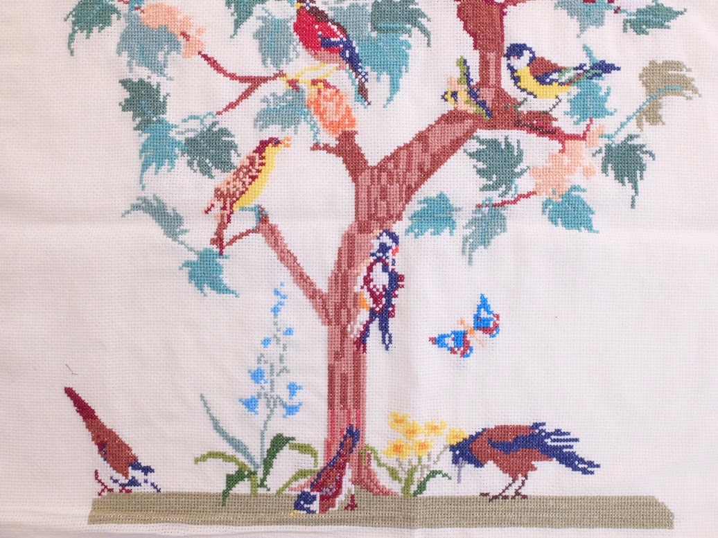 Van dit borduurwerk van de vogeltjesboom kan ik wat makkelijker afscheid nemen: ik plaats het in m’n shop.