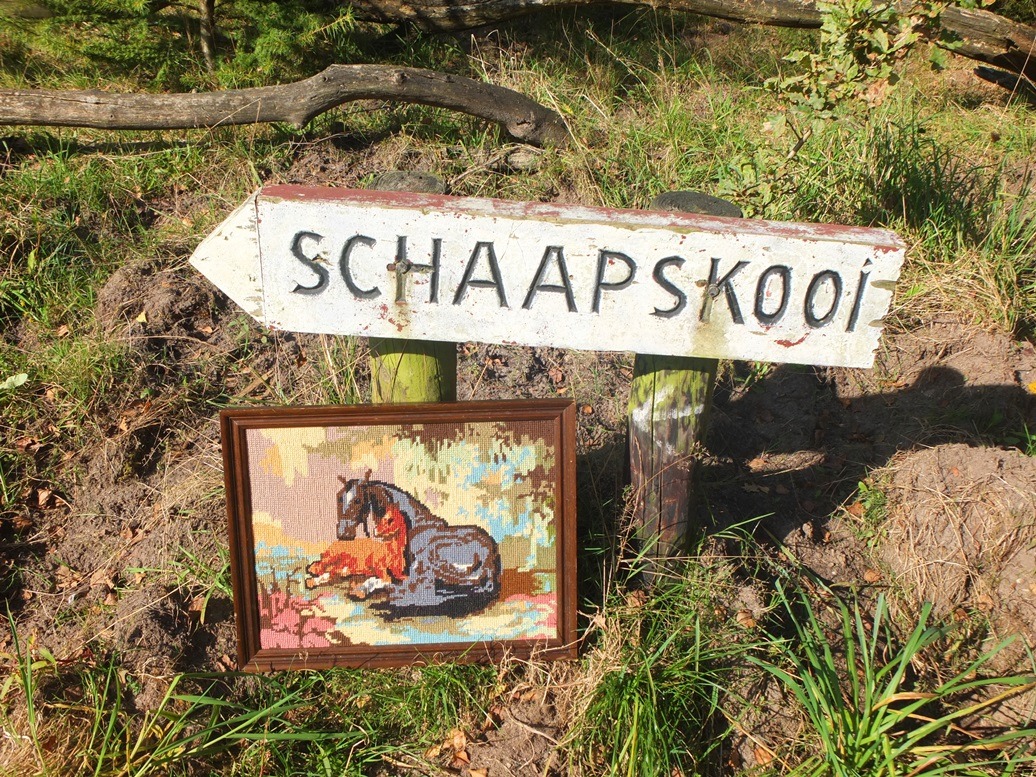 Op 4 oktober (gisteren) wilde ik wel eens wat dieren zien. Na een bezoek aan een rommelmarkt en een kop koffie bij familie lag er nog een zonovergoten vrije zaterdagmiddag voor ons. Het stralende herfstweer nodigde uit om in de mooie omgeving van de Veluwe een wandeling te maken. We kwamen op de Loenermark terecht. Na het parkeren van de auto zagen we een bordje richting de Schaapskooi. Dus liepen we die richting uit.