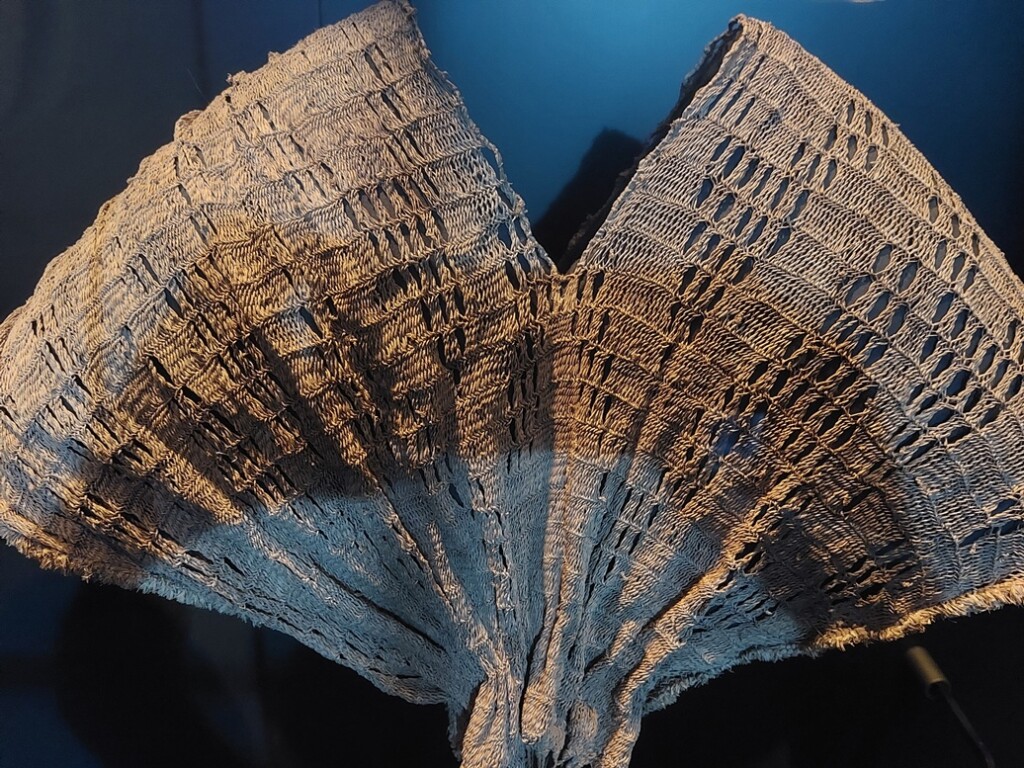 Wat denken jullie: zal ik nog een mailtje doen aan het museum en vragen of ze toch nog eens willen kijken naar dat schoudermanteltje? Niet gemaakt in een weeftechniek maar in een vlechttechniek?