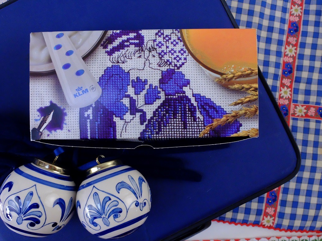 De KLM gebruikte dit borduurwerk voor hun ontbijtdoosjes die in de vliegtuigen werden uitgedeeld.
