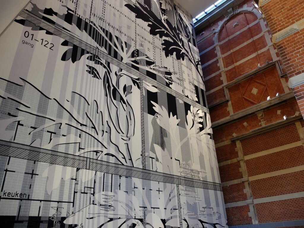 Bijzonder van dit grote werk is dat het niet is opgebouwd uit een patroon wat elke vierkante meter wordt herhaald, maar dat het één groot en uniek patroon is.