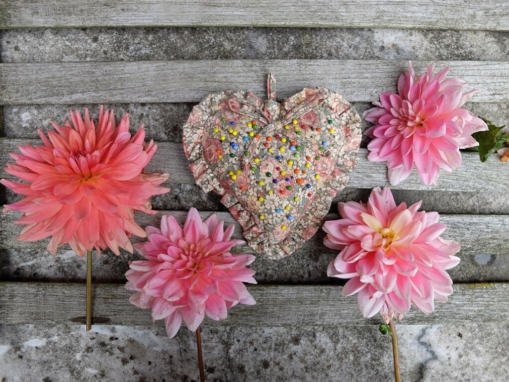 Het speldenkussen van een bloemetjesstofje is een nieuwe aanwinst voor mijn speldenkussen-verzameling.