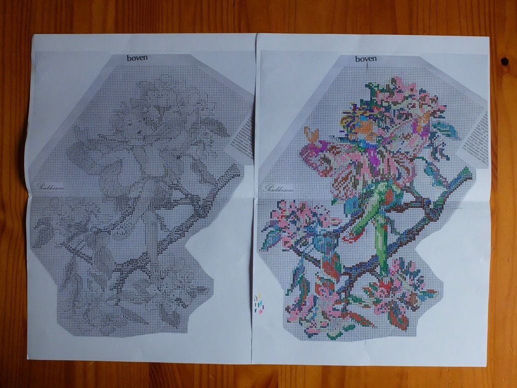 in de nalatenschap van mijn schoonmoeder vond ik de borduurpatronen van deze serie. Helaas niet allemaal compleet. Zij was o.a. met de roos begonnen. De kopieën van het patroon hiervoor zijn aanwezig, maar ik mis de nummers van het borduurzijde bij de bijbehorende tekens/codes.