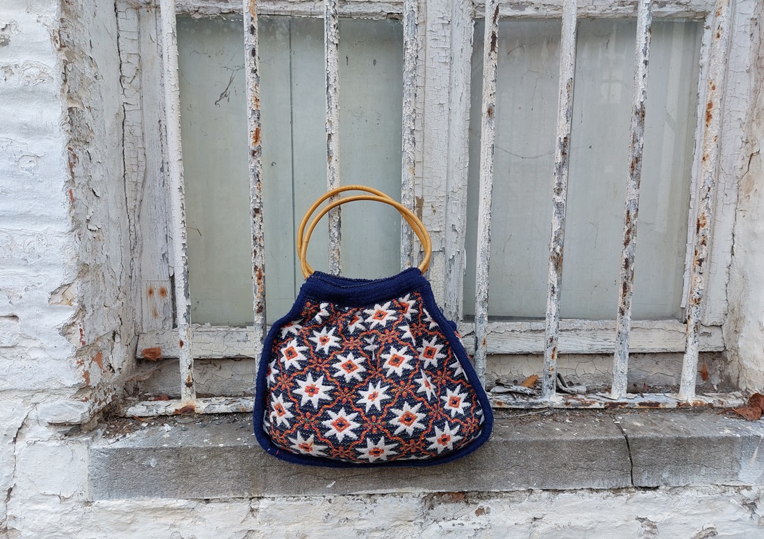 Een ‘mooie’ achtergrond doet vaak veel om je tas goed te laten uitkomen. En dan zie je nog beter hoe mooi dat handwerk is. Deze geweven tas is al een tijdje mijn favoriet.