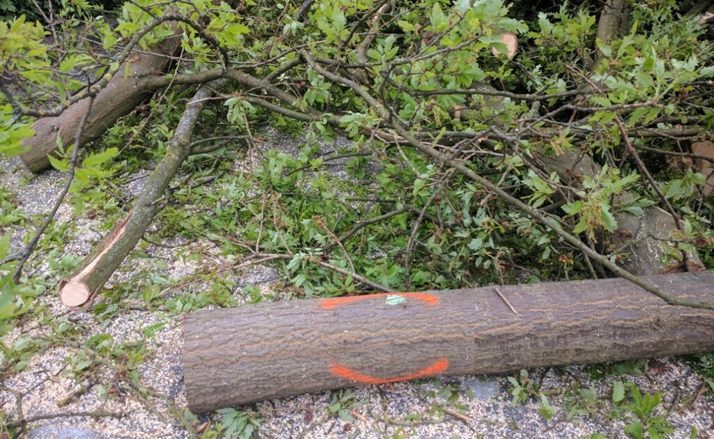 Er waren meer dan tien grote bomen vlakbij mijn huis gemarkeerd. En toen hoorde ik lawaai. Ik liep naar buiten om te kijken of het ècht zo was. Ja, het was echt zo. En nu zijn die bomen dus omgezaagd. Mensen uit de buurt hadden geklaagd dat ze te weinig fietsruimte hadden, dus moesten de bomen omgezaagd om de weg te verbreden. Maar als ìk nou eens ga klagen, dan ben ik bang dat het weinig helpt. Ik zou bijvoorbeeld kunnen gaan klagen dat er te weinig groen overblijft…..