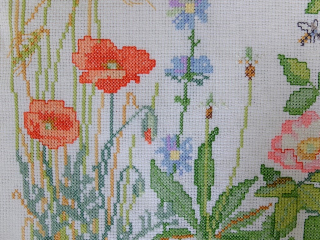 Een andere manier om de papaver-parade (die nu weer in tuinen en velden te zien is) vast te leggen, is met de borduurnaald. En dat is ook mooi!