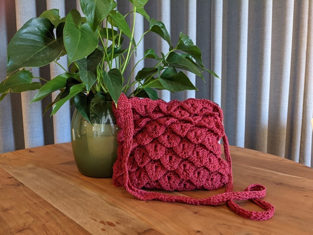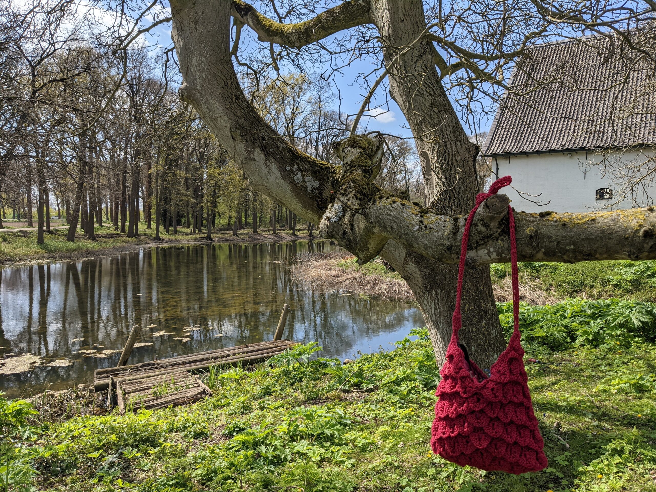 Het was vandaag weer eens tijd voor de tandarts, dus ik kon ook weer eens een tasje meenemen. Ik koos een gehaakte tas waar ik een breiwerk in kon stoppen. Maar ik hoefde niet lang in de wachtkamer te zitten, dus het breiwerk bleef in de tas.