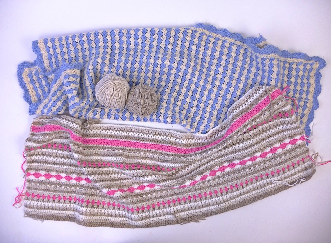 Twee vrouwen die elkaar alleen via internet kenden, hadden eind vorig jaar een idee om een Engels patroon van een gehaakte deken te vertalen. Elke week zouden ze dan de beschrijving van een paar randjes op internet zetten op hun eigen blog. Ze nodigden andere vrouwen uit om ‘aan te haken’ en mee te doen om ook de deken te haken. Aan het eind van het jaar heb je dan een prachtige eigengehaakte deken. Van het begin af aan was het project een overweldigend succes. Eerst reageerden honderden vrouwen, later zelfs duizenden. De initiatiefneemsters wisten niet wat ze meemaakten en waren compleet verrast door het succes. Ze werden zelfs geรฏntervieuwd door plaatselijke en landelijke kranten, en daarin vertelden ze dat wolwinkels de vraag haast niet aankonden. Omdat zoveel vrouwen ineens allemaal wol gingen kopen om mee te kunnen doen. Elke vrijdag wordt het nieuwe randje geplaatst op de blog van Tertia (de creatieve wereld van Terray). Daarop vind je ook de interviews nog terug. Degenen dieย nog niet gehoord hadden van dit Crochet Along (CAL) project zullen het met verbazing lezen. De meeste handwerksters hebben al wel van dit initiatief nu gehoord, maar ik had toegezegd hier nog wat meer over te schrijven. Dat was twee weken geleden, toen er een landelijke haakdag was georganiseerd. Dus vandaag schrijf ik hier wat over, en laat ik ook deze foto zien. De onderste deken wordt door mijn vriendin gehaakt. Ze was bij mij op bezoek en toen ik haar kleurenkeuze zag, ging ik gauw een oud dekentje van zolder halen wat ik daar al meer dan 25 jaar bewaar. Dat past er mooi bij! Het is gehaakt door mijn tante toen ik mijn eerste baby kreeg. Ik vind het zelf erg leuk: deze combinatie van oud en nieuw dekentje in pastelkleuren!
