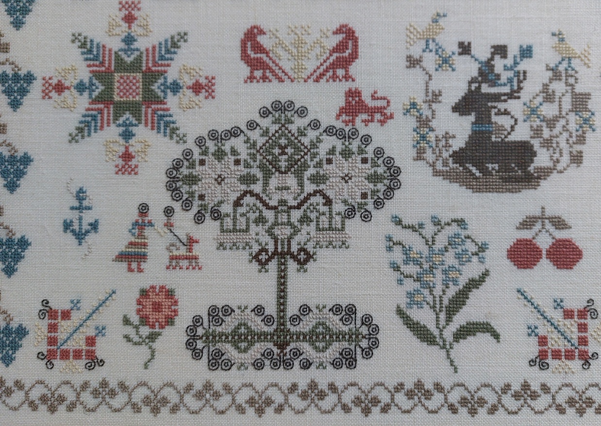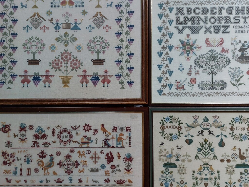 Ik heb van alles tevoorschijn gehaald: antieke merk- en stoplappen, ingelijste reproducties van merklappen, en Nederlandse, Engelse, Duitse en een paar Franse boeken over merklappen.
