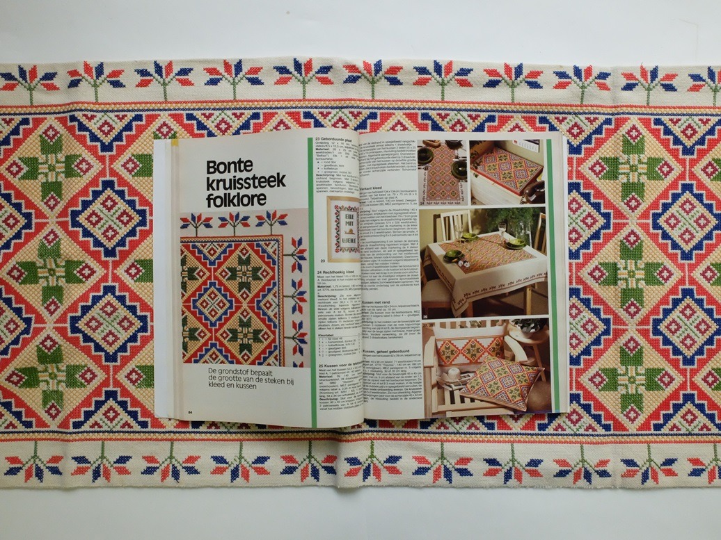 Om nog een andere reden vond ik het leuk om dit boek te ontdekken: er staat een patroon in van een kleed wat ik zelf ook heb. Een loper hélemaal volgeborduurd met de bonte folklore kruissteek!