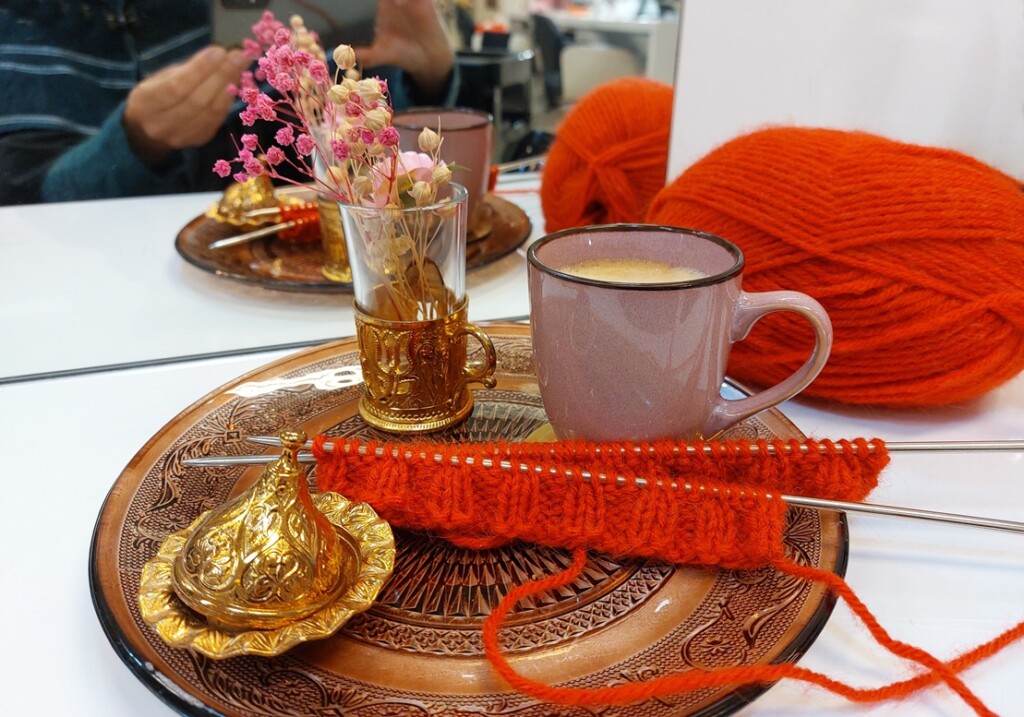 Het is altijd zo lekker om te breien bij de kapper maar ik had niks geschikts op de pennen. Daarom nam ik maar gewoon een bol wol mee en besloot een boord te breien. Dit breit zo lekker, ik wil verder, maar hoe?