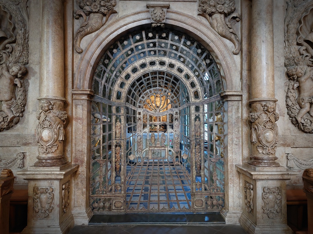 En het is ook voor iedereen, gelovig of ongelovig, een bijzondere ervaring om door marmeren poorten en hekwerken van edel smeedwerk te kijken naar wat voor glanzends daarachter is. Je komt onder de bekoring van vakmanschap en schittering, geschiedenis en betekenis.