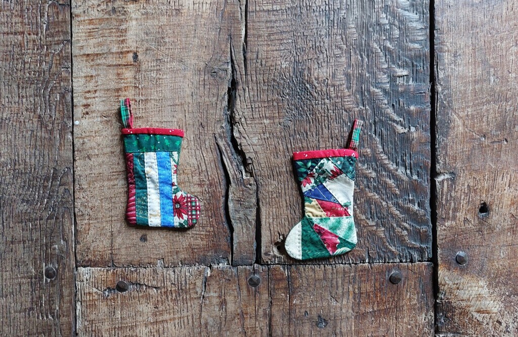 Na dit ochtendblogje nam ik de sokjes mee in een kersttasje, en bij een rondleiding door een gebouw van meer dan 500 jaar oud legde ik ze even op de vloer. Ongelooflijk, wat een brede planken: