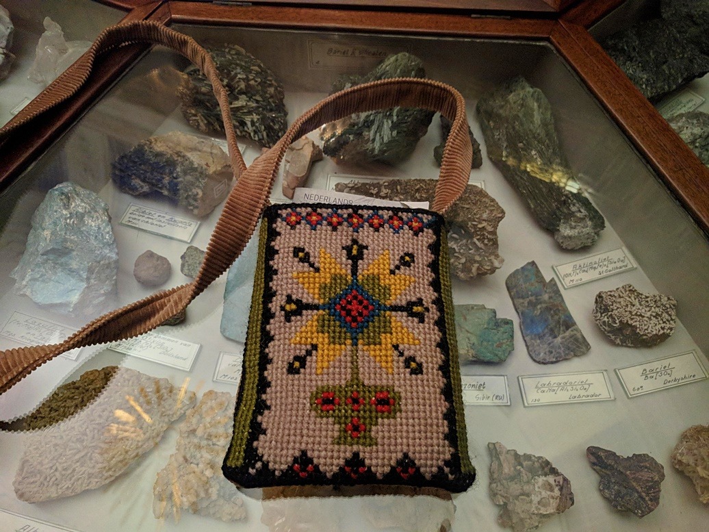 De tasjes die ik meeneem naar een museum zijn steeds kleiner geworden. Er hoeft geen fototoestel meer in. Tegenwoordig is een mobiel nèt zo goed en zeker net zo handig. Ik vind het fijn om zo weinig mogelijk bij me te hebben in een museum en daar zijn die kleine tasjes ideaal voor. Als je ook zoiets wilt maken: kies dan voor een lang hengsel, zodat je het over je schouder kunt hangen. En liefst van een èigen borduurwerk hè!