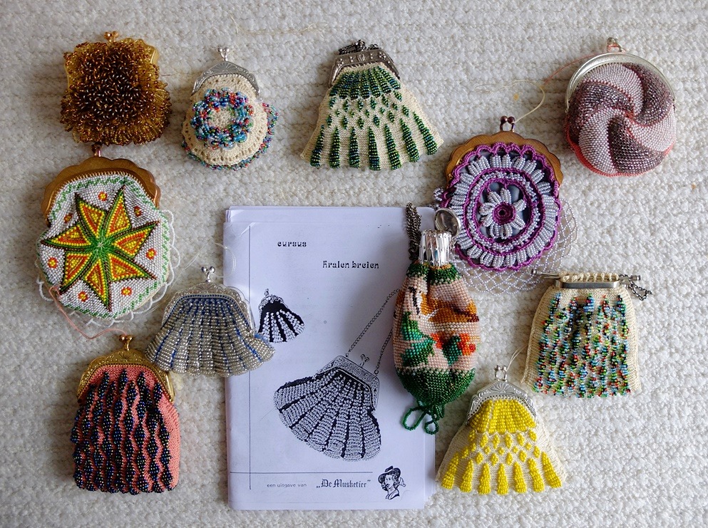 Ik vond het mooi om deze kralenbeursjes bij elkaar zien. En voor liefhebbers misschien een stimulans: ook eens proberen?