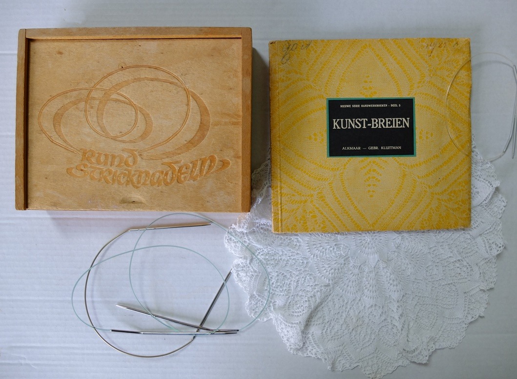 En dan heb ik nog iets moois: een speciale doos om rondbreinaalden in op te bergen! Er zijn houten dozen met een schuifdeksel speciaal voor breinaalden, en bijpassende dozen speciaal voor haaknaalden. En nu blijken er dus vroeger ook dozen te zijn gemaakt speciaal voor rondbreinaalden!