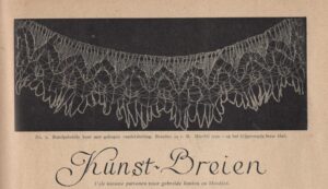 Kunstbreien was vooral in de eerste helft van de vorige eeuw populair, en daar bestonden bijzonder fraaie boekjes voor. “Een leek staat met bewondering voor dit fijne spinnewebachtige weefsel en gelooft nooit zelf zoo iets te kunnen maken. Aandachtig bekeken, zijn echter deze gaatjes niets anders dan de muizentandjes, die in elke school aan een kous worden geleerd en vormen zij ook ’t voornaamste sieraad van deze zeeschuimachtiage modellen.” Zo staat er in het oude boekje Kunst-breien in de inleiding te lezen. “Vooral op één ding willen wij wijzen en wel, dat ’t patroon zich bij de meeste modellen dikwijls herhaalt, hetgeen in hoofdzaak het geval is bij die kleedjes die naar éénzelfde grondvorm worden gebreid. Men kan dan na eenige oefening reeds groote gedeelten uit het hoofd werken en behoeft niet zoo angstvallig elken steek van het patroon na te zien.” En zo worden breisters overgehaald om het ook eens te proberen!