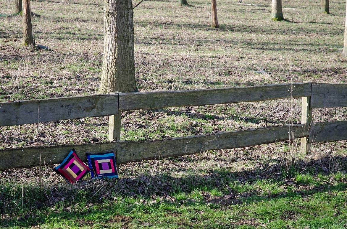 Soms heb ik op zondag niet zo’n zin om te bloggen want dan ben ik met andere dingen bezig. Of ik heb gewoon alleen maar zin om uit te rusten. Of ik heb geen zin om dingen te doen die ik door-de-week ook al doe. Soms denk ik op zondagmorgen: “Ach, laat maar.” En dan denk ik ’s middags weer: “Maar het is ook jammer om een dag over te slaan.” Herkenbaar voor anderen, al die verschillende overwegingen? Ik denk dat ik er nu wel uit ben: ik plaats op zondag gewoon een foto van een kussentje! Dan is de boodschap iedere week hetzelfde: kussens zijn om uit te rusten! En de zondag ook. En op deze manier laat ik toch weer wat moois zien wat ik zelf maakte, want foto’s heb ik altijd wel genoeg. Deze foto’s maakte ik een paar weken geleden. Ik hou van die felle kleuren in het nog kale landschap. Inmiddels is alles al weer wat groener. Verder vind ik deze foto’s ook wel grappig voor bij dit stukje: de kussens leunen tegen het hek. Ik hoop dat jullie ook allemaal een fijne aanleun- en uitrustdag hebben!