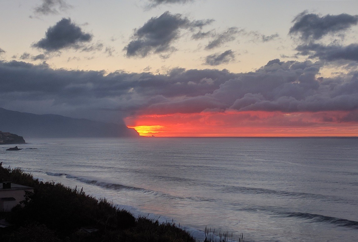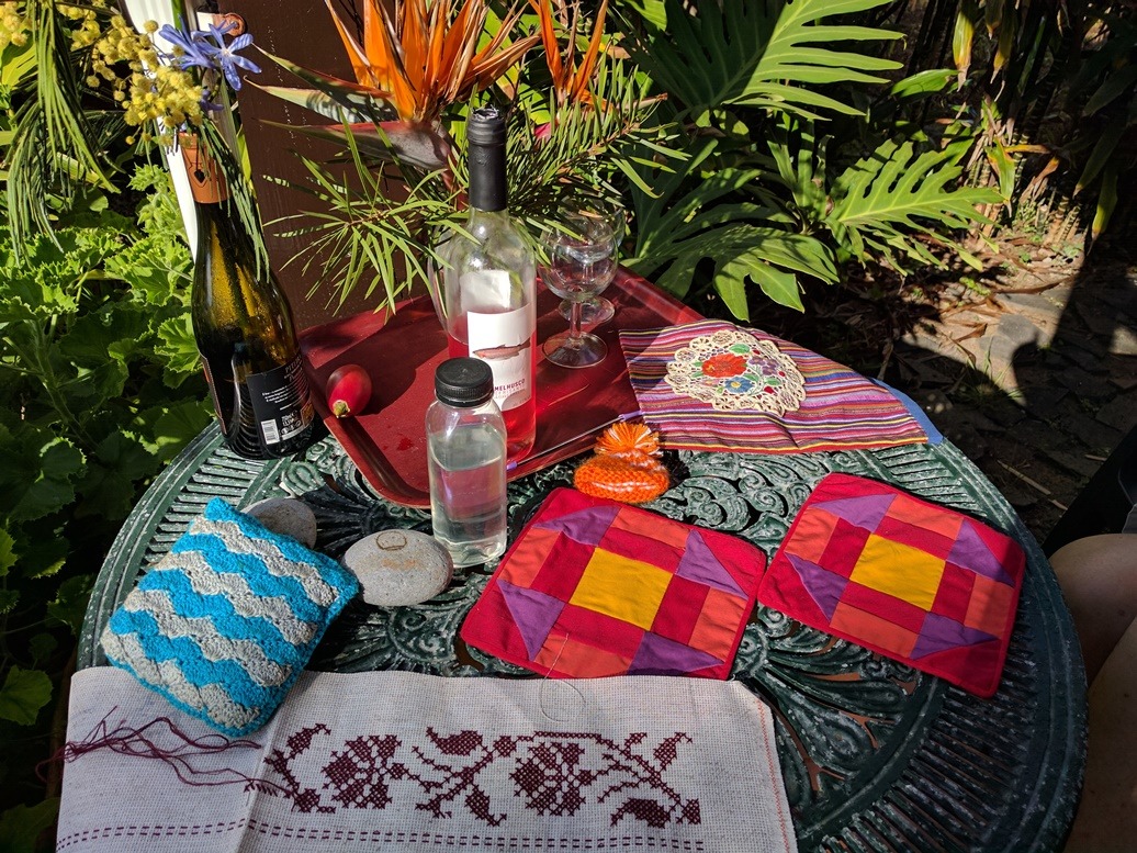 De kleuren op het eiland zijn intens. Ik borduur wat, ik luier wat, ik drink wat en ik kijk wat. Uitzicht over de grote oceaan. Zo zou ik nog dàgen kunnen blijven zitten. Maar de vakantie nadert het einde. De zon gaat onder en het is tijd om naar huis te gaan.