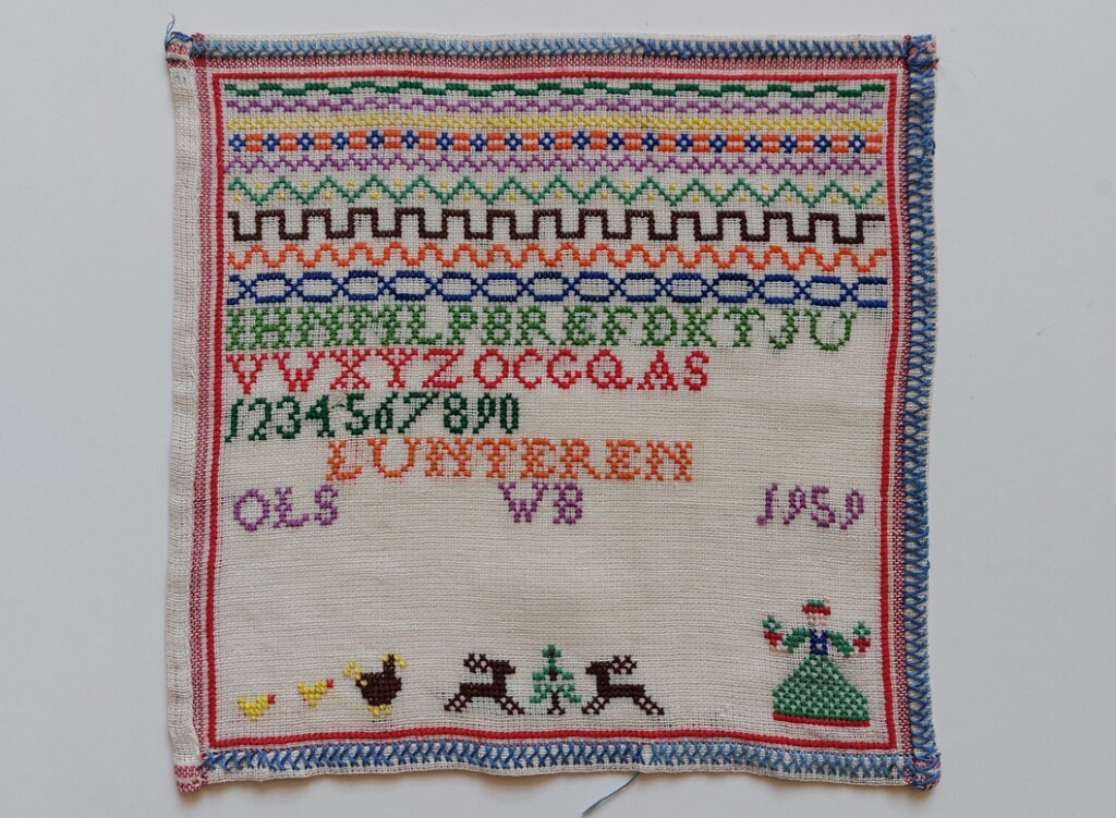 Inmiddels weet ik wel waar merklap-liefhebbers het meest van zijn gecharmeerd: van merklapjes met een plaatsnaam, de naam van de borduurster, en/of het jaartal. Het liefst zoveel mogelijk gegevens! Dat maakt een merklapje persoonlijk, รฒf het kan dan goed in een verzameling passen. Sommigen verzamelen merklapjes van alle jaren sinds 1900, en als je dan 1959 nog niet hebt dan kan het een leuke aanwinst zijn. Anderen verzamelen merklapjes met plaatsnamen die beginnen met alle letters van het alfabet, en als je dan de L (van Lunteren) nog niet hebt, dan kan het ook een leuke aanvulling zijn.