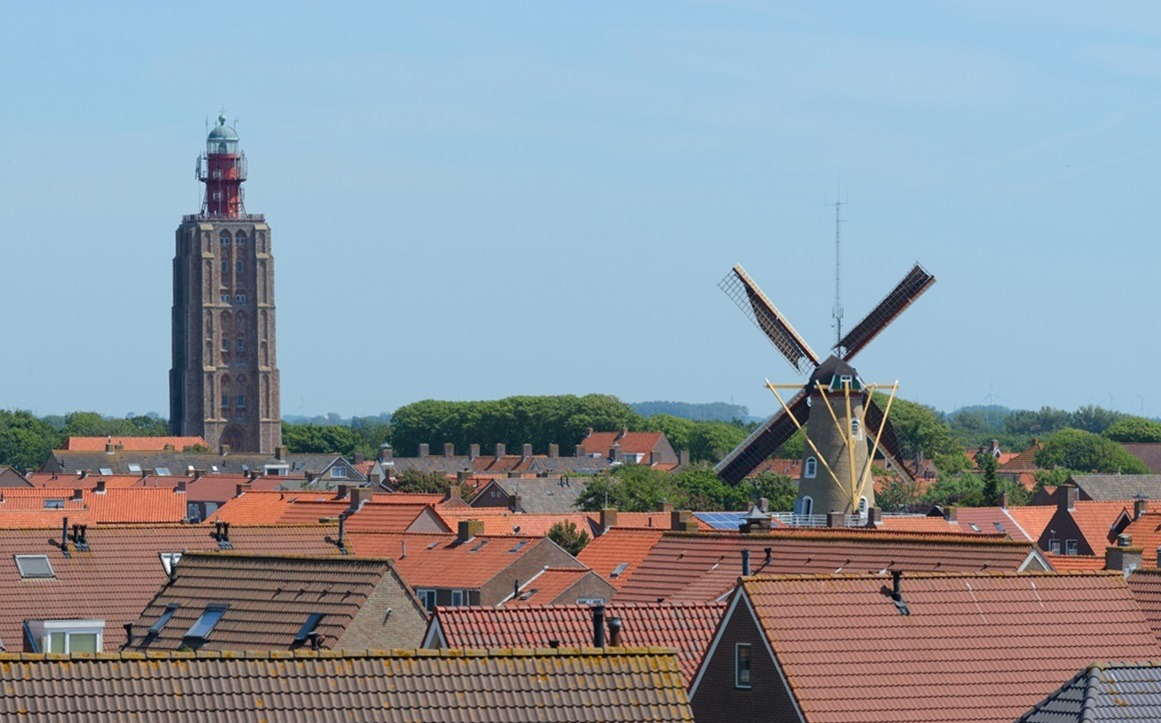 Uitzicht: daar gaat het allemaal om! Dit is het uitzicht vanaf een dijk bij West-Kapelle. Even later reden we langs die vuurtoren en zagen een bordje dat je hem ook kon beklimmen. Er kwamen net een paar toeristen naar beneden en die waren zo enthousiast dat we het ook waagden. Het was lang geleden dat we zoiets deden en we vonden het fijn om te merken dat het (weer) kon! En ook superlekker om met 35 graden bovenop de koele zeebries te vangen.