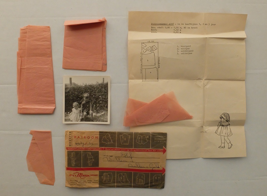 En die herinneringen sluiten helemaal aan bij wat mijn schoonzus me pas liet zien. Ze had een oud patroon gevonden van een jurkje wat haar moeder in 1963 had besteld. In de envelop zat ook een foto van haar als klein meisje waarop ze het jurkje aan heeft. En aan de hand van het poststempel op die oude envelop en de datum van de vakantie waarop ze het jurkje droeg, kon ze het terugrekenen: tussen de bestelling van dat patroon en de dag waarop de foto werd gemaakt zaten maar een paar dagen. Ineens wordt het dan duidelijk: de moeder zag de vakantie naderen, het was mooi weer, en ze wilde voor haar kleine meisje nog even een mooi zomerjurkje naaien. Wat lief!